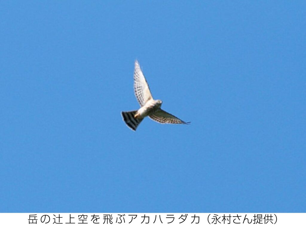夏に朝鮮半島や中国で繁殖し、南アジアで越冬するアカハラダカの南下する姿が、今年も岳の辻山頂から確認された。