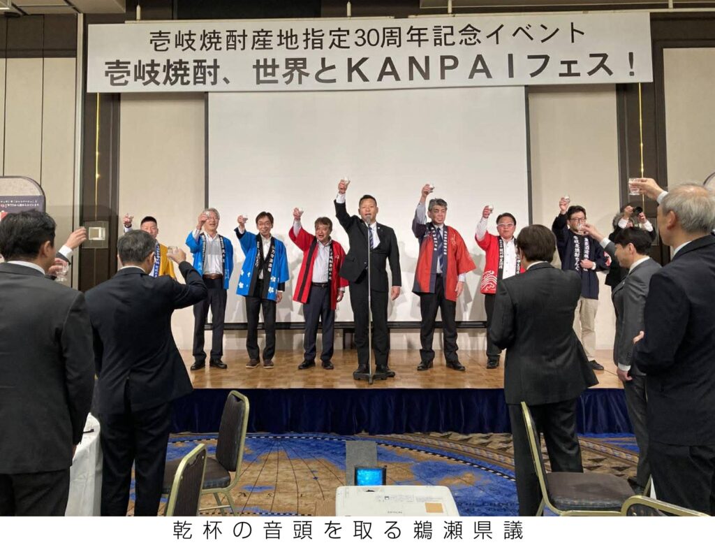壱岐酒造協同組合は14日、長崎市のホテルニュー長崎で「壱岐焼酎、世界とKANPAIフェス」を開き、約150人が参加した。
