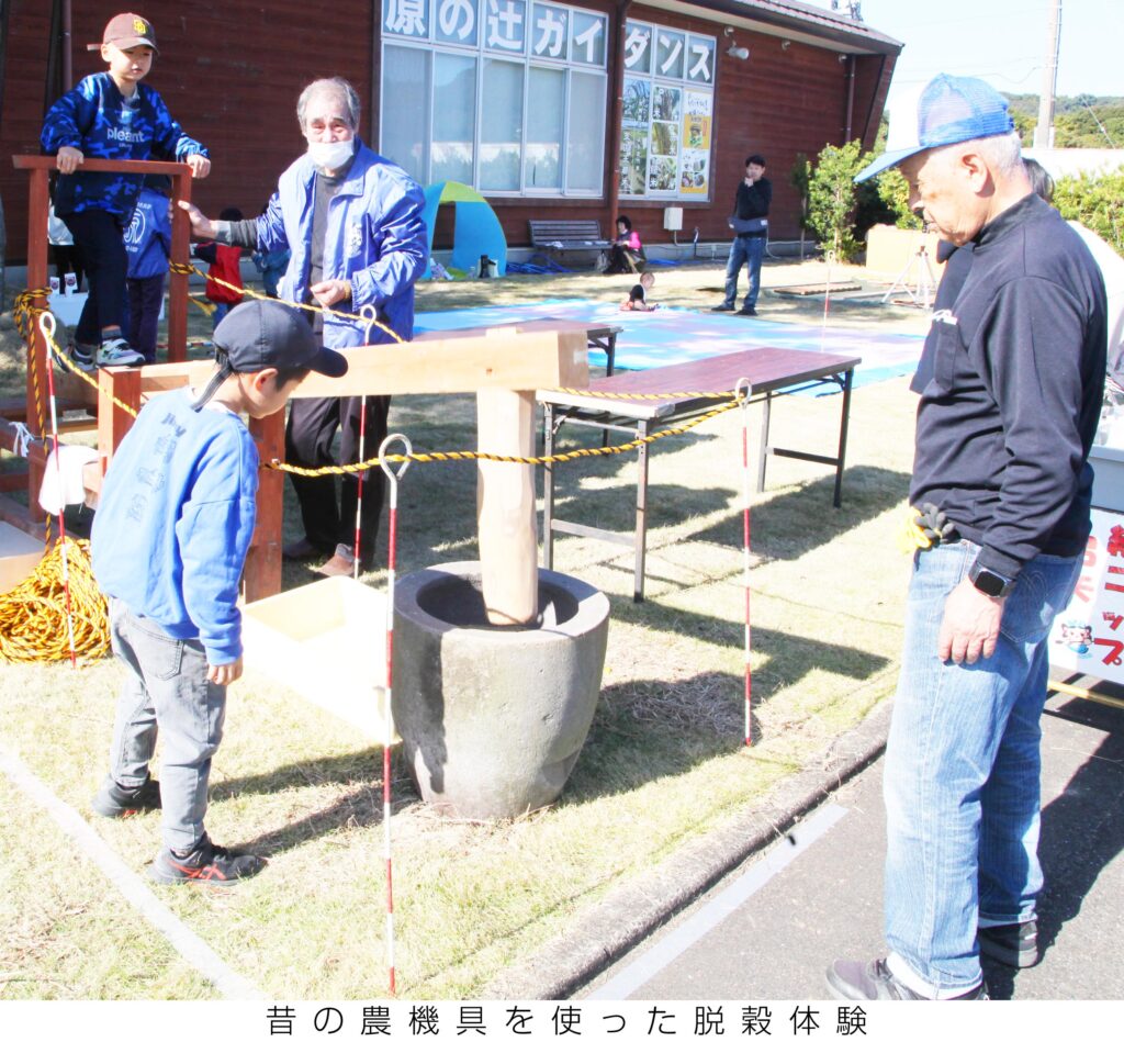 原の辻ガイダンスの「王都米づくり体験 秋の収穫祭」が11月22日に開かれ、親子連れなど約4百人が参加した。