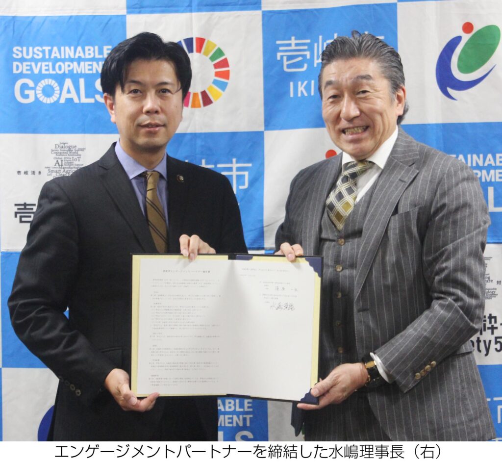 市役所で開かれた締結式で篠原一生市長は「壱岐をアップデートする壱岐新時代プロジェクトの追い風になることを期待しています」とあいさつ。水嶋理事長は「元々あった日本のいいものを復活させるような事業をしていきたい」と述べた。