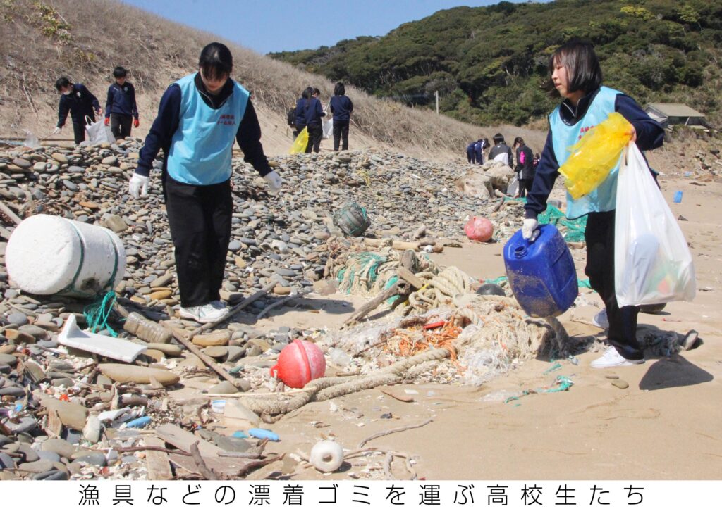 参加した壱岐高校1年の山川菜月さんは昨年夏、海岸清掃イベントに参加して楽しかったことから参加。「海外のゴミも多く、私たちでは止められないので拾うしかないと思った。壱岐は自然が売りなので、自分も美しい自然を保ったり、アピールしていきたい」と話した。